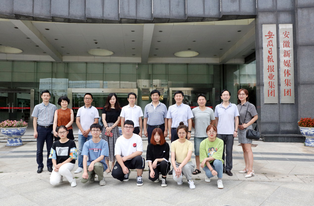 8月13日下午,中文系黨總支書記朱濤和中文系黨總支副書記、系副主任丁增武帶領(lǐng)部分教師赴安徽新媒體集團(tuán)檢查新聞學(xué)專業(yè)學(xué)生認(rèn)知實(shí)習(xí)工作。