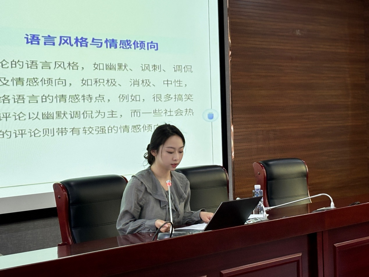 2025年4月29日下午,以“語言網(wǎng)絡(luò)化與媒介化思維的辯證之思”為主題的合肥大學(xué)2025年研究生學(xué)術(shù)沙龍系列講座在一期學(xué)術(shù)報(bào)告廳舉辦。本次講座由語言文化與傳媒學(xué)院23級(jí)碩士研究生趙天琪主講。語言文化與傳媒學(xué)院23級(jí)、24級(jí)碩士研究生,部分本科生參加。