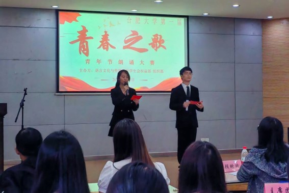 5月7日18:30,語言文化與傳媒學院在三區大學生活動中心開展合肥大學第一屆“青春之歌”朗誦比賽。此次比賽旨在弘揚優秀文化,提升學生的口語表達能力和藝術鑒賞力,同時也是院校文化建設的重要組成部分,吸引了眾多熱愛朗誦的學生參與。