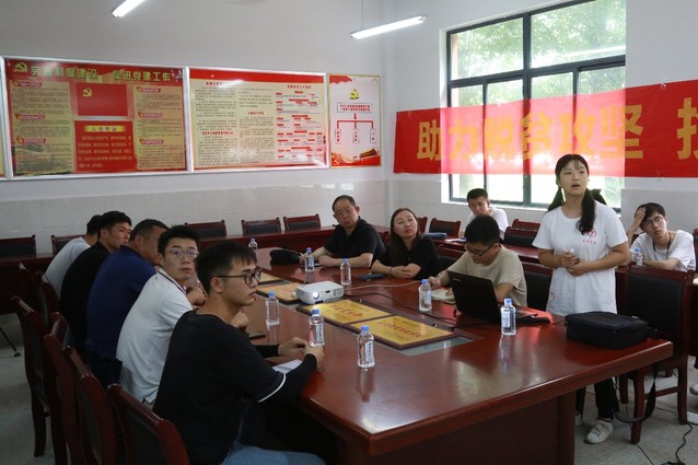 隨后,領導們頂著烈日來到會議室召開會議。會議伊始,由“三下鄉”實踐活動負責人吳成晨通過PPT的形式進行支教工作匯報,她表示,本次的支教活動以“推普脫貧攻堅”為主題,并介紹了志愿者的日常工作以及攝影小課堂,安全知識講座等特色活動。接著,由各位領導一一發言。董承軍表示,今年由于疫情,水災的情況,將支教人數壓縮到往年的一半,但是志愿者們的工作卻絲毫不懈怠,這讓他感到很欣慰,更讓他開心的是很多外地的學生也積極參加本次活動。杜娟提出可以讓志愿者們征集周圍人民意見,開展有針對性地課堂,同時也可以考慮跨學院合作,使教學科目更加豐富。同時,團委的領導們也志愿者們表達了由衷的贊許和敬佩,表示這將是一次彌足珍貴的回憶。至此,本次會議圓滿結束。