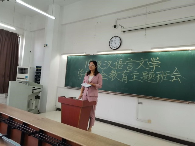 929日上午11時,在合肥學院35409教室,語言文化與傳媒學院黨委副書記、19級漢語言文學專業輔導員張愛萍老師主持召開了19級漢語言文學專業學生安全教育主題班會。