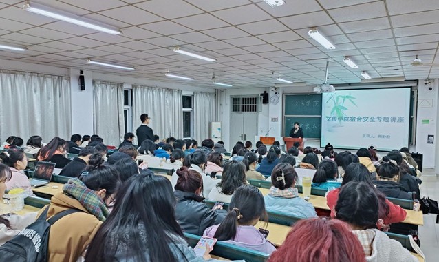 為切實提高學生安全意識,強化學生宿室安全建設,11月29日晚6:30,語言文化與傳媒學院學工辦主任顧盼盼為我院學生作宿室安全專題講座,130名學生代表參加了本次會議。