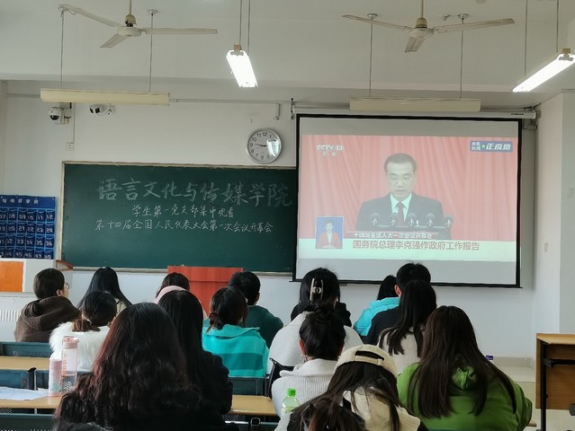 202335日上午九點,第十四屆全國人民代表大會一次會議在人民大會堂開幕。語言文化與傳媒學院學生第一黨支部組織學生黨員以集中和分散學習的方式,觀看了大會開幕式直播。