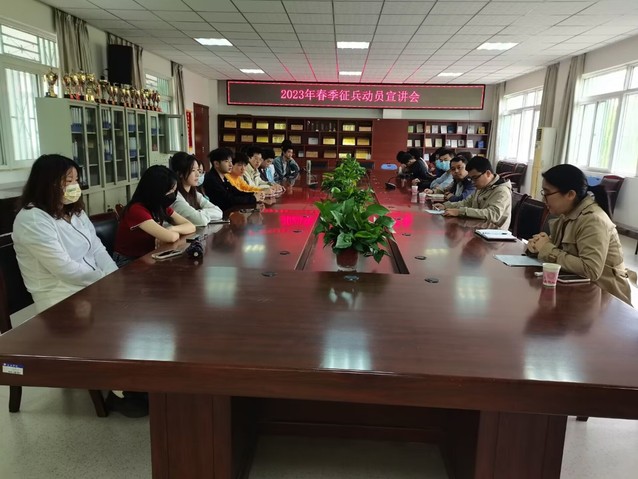 為貫徹落實(shí)國(guó)家征兵政策,鼓勵(lì)學(xué)生積極響應(yīng)號(hào)召應(yīng)征入伍,5月6日,語(yǔ)言文化與傳媒學(xué)院邀請(qǐng)學(xué)生處征兵辦鄭國(guó)平老師來(lái)我院開(kāi)展征兵宣傳活動(dòng),語(yǔ)言文化與傳媒學(xué)院2023屆畢業(yè)班全體男生參加。