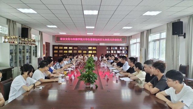 6月12號下午三點在一區善思樓C座二樓會議室舉行語言文化與傳媒學院大學生暑假包河區認知實習啟動儀式。包河區團區委書記吳曉雯、少工委副主任宋沄及各街道團工委負責人到訪我院參加啟動儀式,儀式由語言文化與傳媒學院黨委副書記張愛萍主持,語言文化與傳媒學院院長丁增武、語言文化與傳媒學院副院長殷明明、各系主任、輔導員以及參與本次大學生暑假包河區認知實習的同學們參加。
