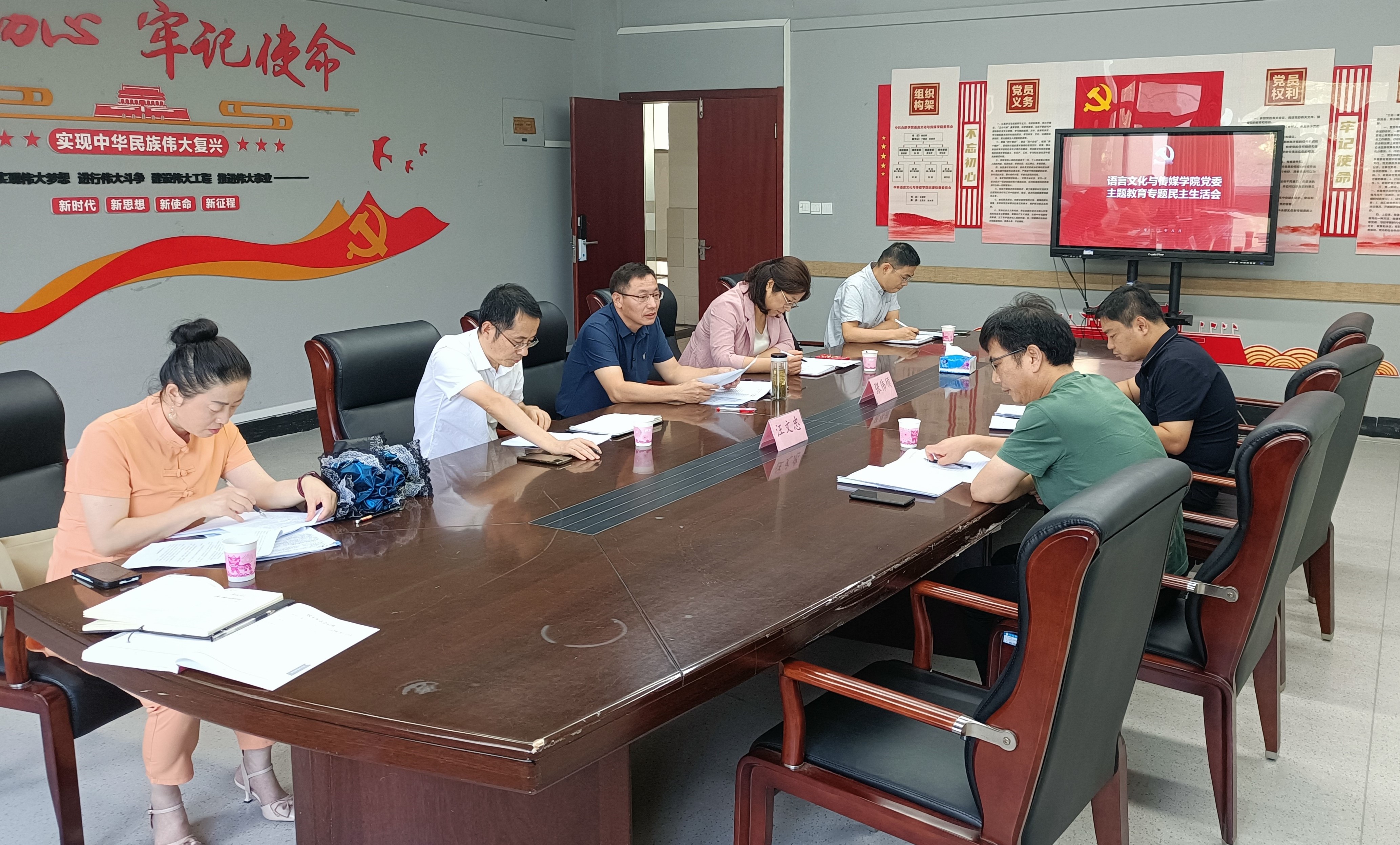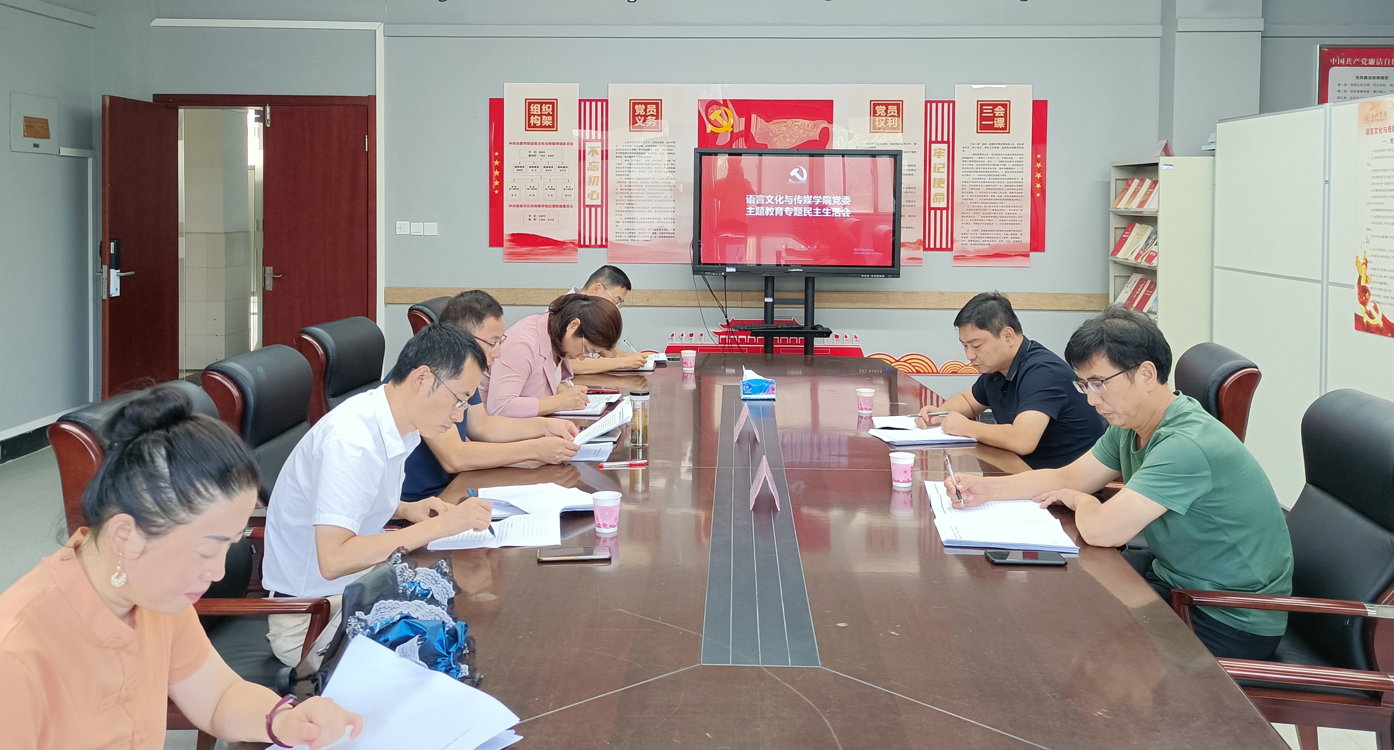 8月31日,語言文化與傳媒學院黨委召開學習貫徹習近平新時代中國特色社會主義思想主題教育專題民主生活會,校黨委辦公室主任汪文忠,副主任張偉頎到會指導。會議由院黨委書記儲昭輝主持,院領(lǐng)導班子全體成員參加。