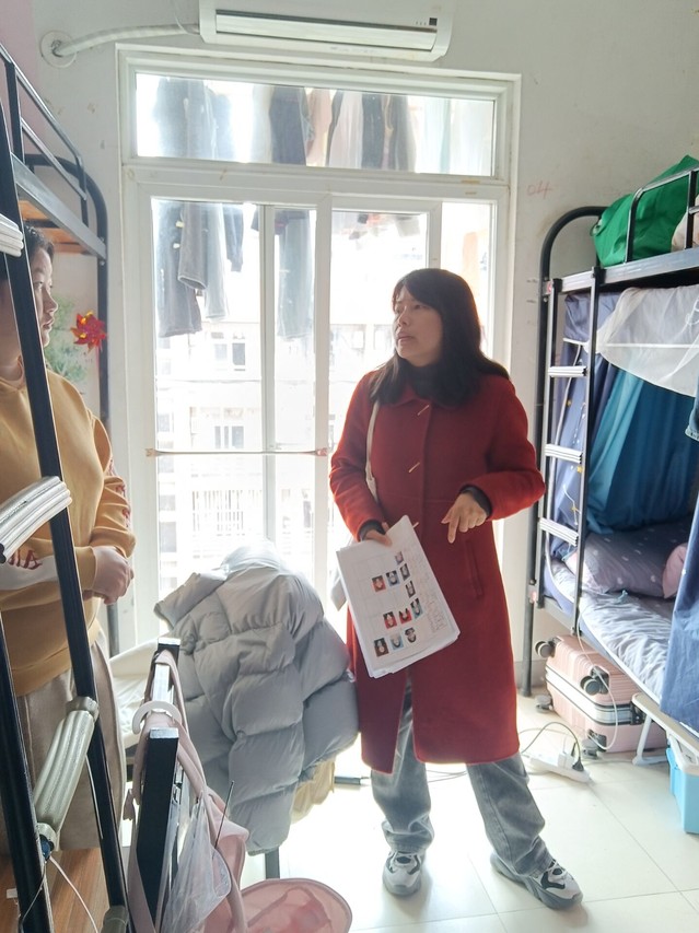 2024年3月28日,語言文化與傳媒學(xué)院黨委副書記張愛萍、副院長殷明明帶領(lǐng)全體專職輔導(dǎo)員前往學(xué)生宿舍樓,了解學(xué)生學(xué)習(xí)和生活情況。